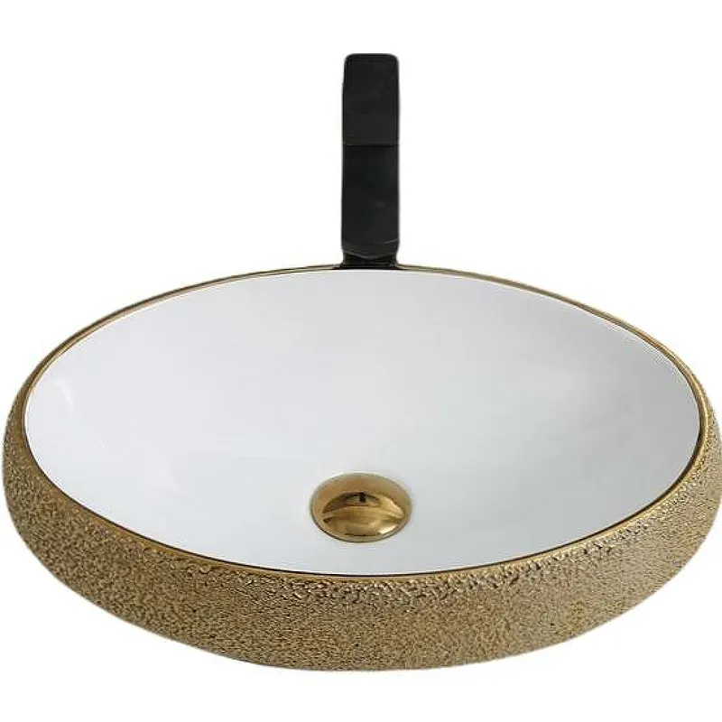 Элегантная раковина-чаша CeramaLux 49 433J — это идеальное решение для стильной ванной комнаты. Бело-золотая расцветка и овальная форма добавят изысканности вашему интерьеру, а качественный фаянс обеспечит долговечность.