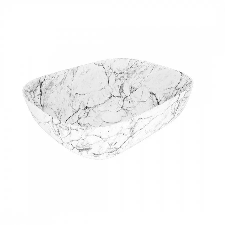 Раковина чаша Maretti FL13NS25-740MR, белый мрамор. Материал: санфарфор. Размер: 49x39,5x15. Форма: прямоугольная. Преимущества: