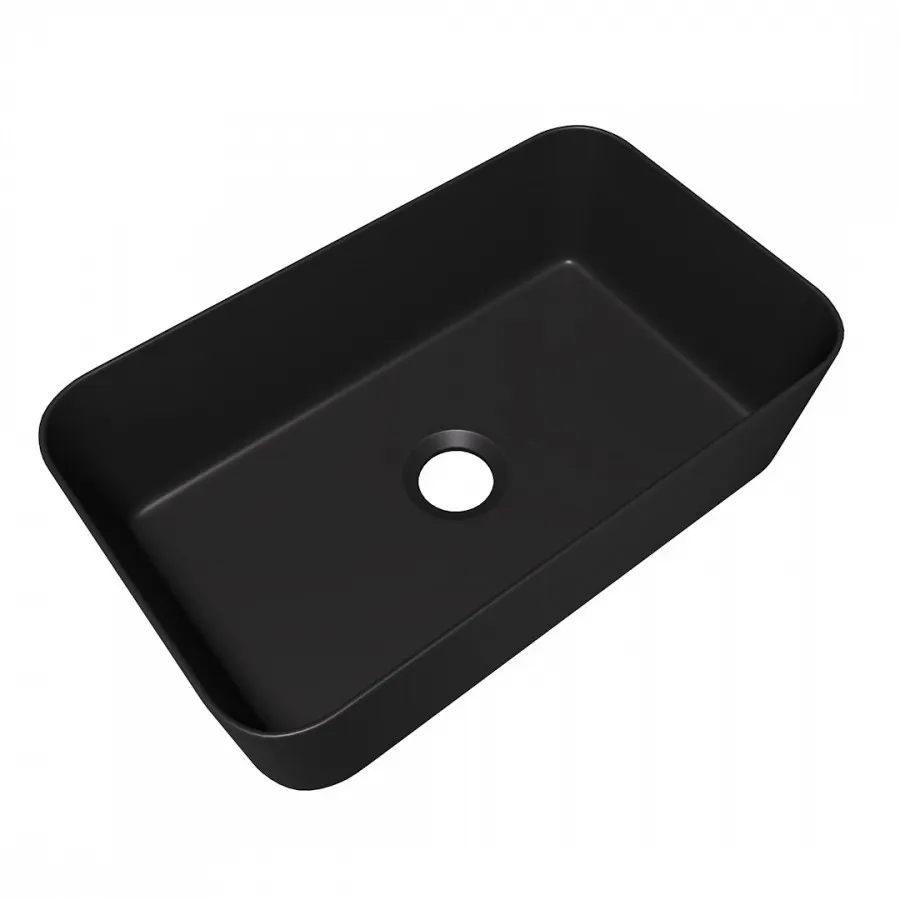 Раковина чаша Maretti UM13NS48-560, черная. Материал: санфарфор. Размер: 29,5x48x13,5. Форма: прямоугольная. Раковина накладная Maretti UM13NS48-560 черная матовая — это стильное и элегантное решение для современной ванной комнаты. Изготовленная из высококачественного санфарфора, она сочетает в себе прочность и долговечность, обеспечивая долгий срок службы и лёгкость в уходе. Матовый черный цвет придаёт раковине утончённый и современный вид, который идеально впишется в различные интерьеры — от минималистичных до более эклектичных. Модель Maretti UM13NS48-560 с размерами 48 см в ширину, 29.5 см в глубину и 13.5 см в высоту идеально подходит для установки на столешницу, создавая стильный акцент в ванной комнате. Прямоугольная форма со скругленными углами и глянцевая поверхность делают её не только практичной, но и визуально привлекательной. Отсутствие отверстий под смеситель и перелив придаёт изделию чистоту и минималистичный стиль, позволяя вам выбрать и установить смеситель по вашему вкусу. Раковина предназначена для использования в бытовых условиях и оснащена стандартным диаметром слива 4.5 см, что обеспечивает совместимость с большинством сливных систем. В сочетании с высококачественным санфарфором раковина обладает устойчивостью к загрязнениям, а её матовая поверхность остаётся привлекательной даже после долгосрочной эксплуатации.