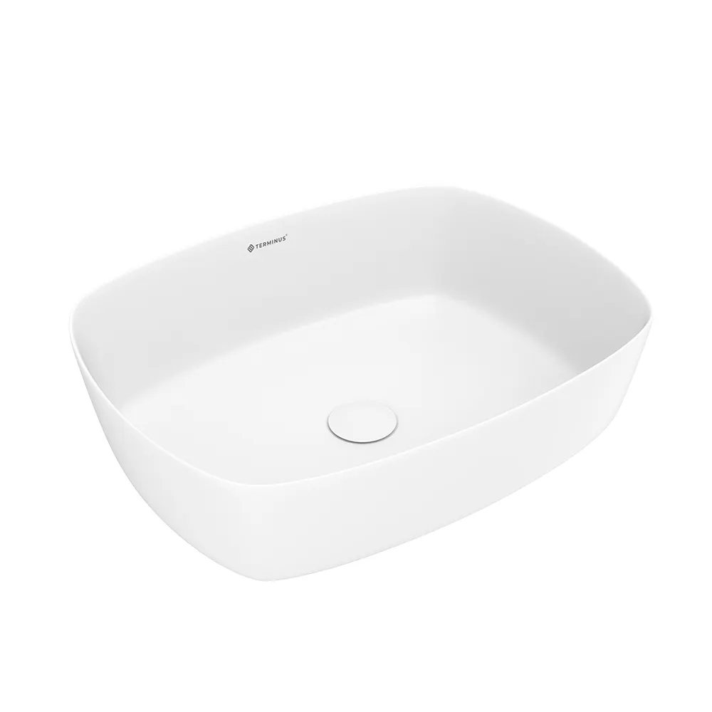 Модель Terminus Ното подойдёт для использования совместно с тумбой большого размера. Её можно сочетать как с прямоугольными, так и округлыми элементами интерьера. Высокое качество глазури накладных раковин Terminus достигается благодаря использованию инновационных технологий, что в свою очередь гарантирует лёгкую уборку и белоснежную поверхность на долгие годы. Максимальная гладкость достигается благодаря увеличению плотности фарфора на поверхности. Глазурь обжигается при высокой температуре, чтобы поверхность была очень гладкой, воздухонепроницаемой, грязи негде было спрятаться. Конструкция раковины обеспечивает лёгкий и быстрый монтаж. Донный клапан в комплект не входит и приобретается дополнительно.