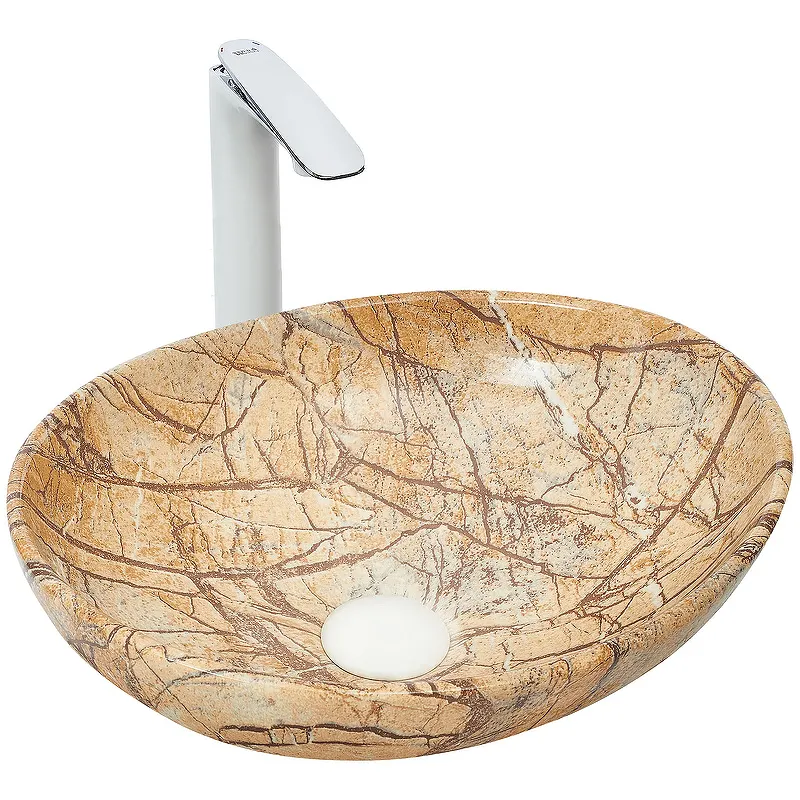 - Современный дизайн: Овальная форма и мраморный оттенок подчеркивают современный стиль вашей ванной комнаты.