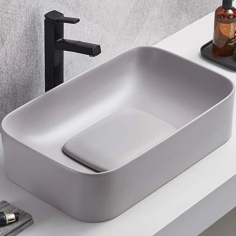 - Современный дизайн: Прямоугольная форма и серый матовый цвет придают раковине элегантный вид, который украсит любую ванную комнату.