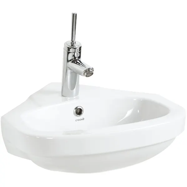 - Угловая раковина Creavit: Угловая конструкция позволяет эффективно использовать пространство, идеально подходя для малогабаритных помещений.