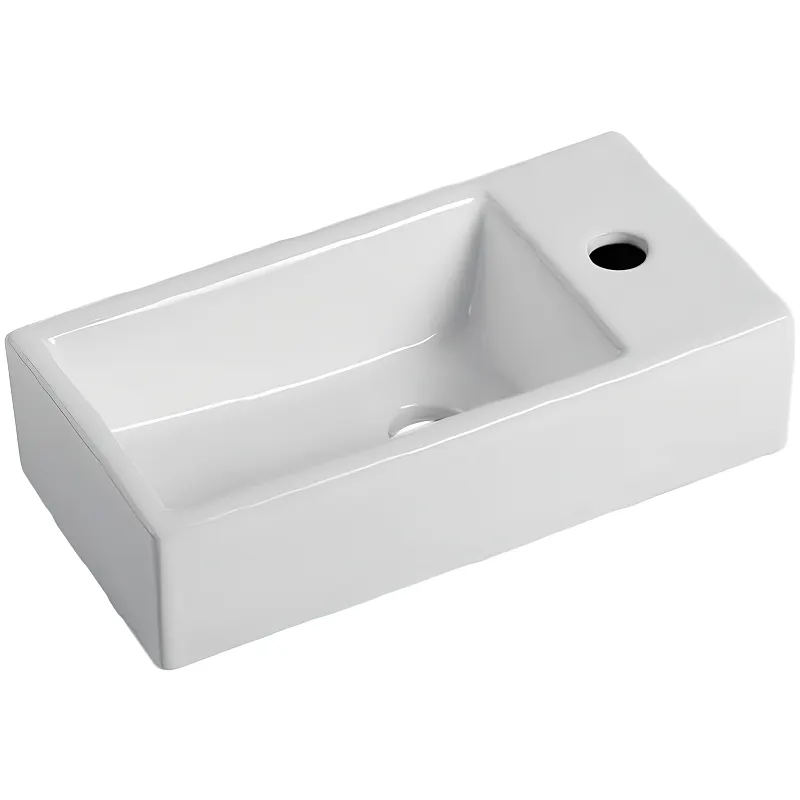 - Раковина с отверстием под смеситель справа обеспечивает удобство использования и лёгкость в установке.