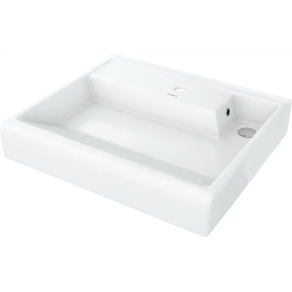 Раковина KIROVIT Престиж 500 на стиральную машину, цвет белый. Артикул: Вн Крв75. Штрихкод (артикул производителя): 4630055558353. Комплектация: Крепление для умывальника, кронштейны, хромированное кольцо для переливного отверстия