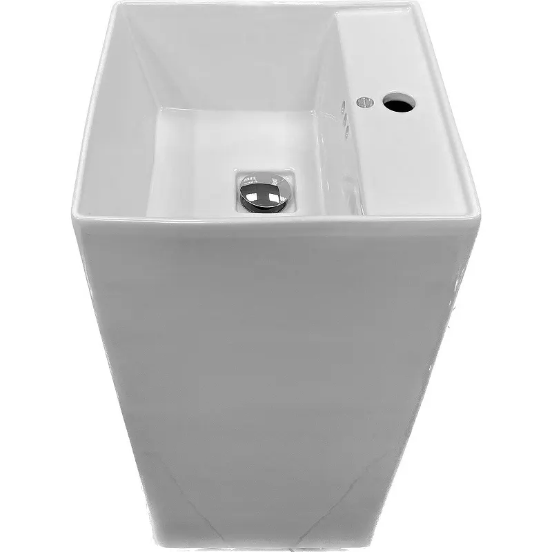 - Белая раковина напольная: Глянцевая поверхность обеспечивает легкость в уходе и устойчивость к загрязнениям.