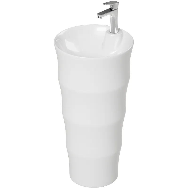 - Белая раковина напольная: Современный белый цвет легко сочетается с любым интерьером и создает ощущение чистоты и свежести.