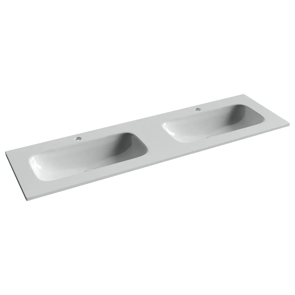 Раковина накладная мебельная CERAMICANOVA Grace прямоугольная 1610x457x137 с двумя чашами и отверстиями под смеситель цвет белый арт-CN7023