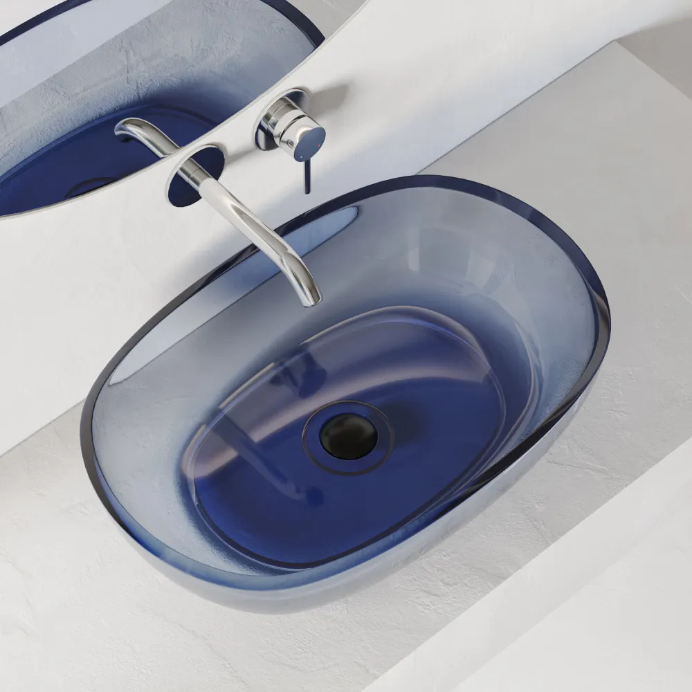 Раковина накладная прозрачная ABBER Kristall синяя арт-AT2805Saphir