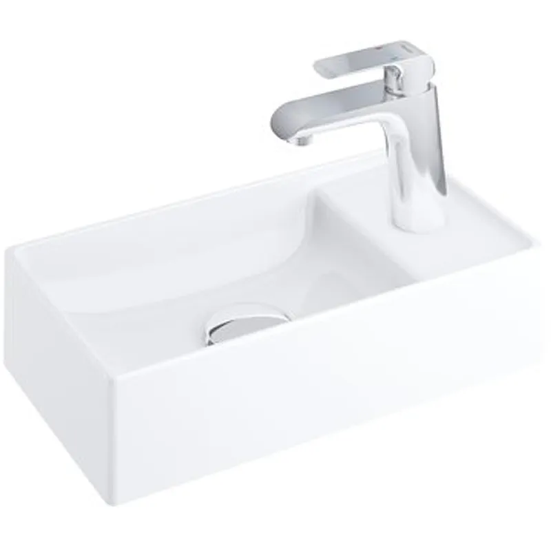 - Керамическая раковина 40 см: Надежный материал гарантирует долговечность и устойчивость к повреждениям.