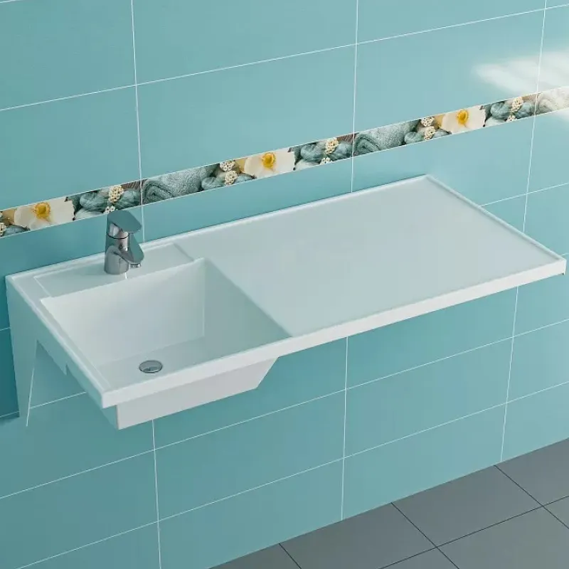 - Раковина-столешница с местом под стиральную машину: Идеальное решение для экономии пространства в ванной комнате.
