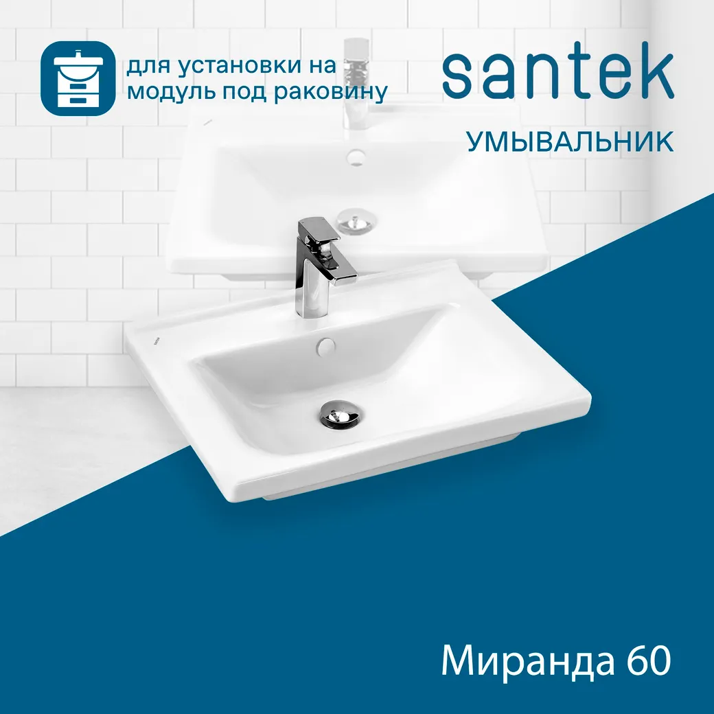 Раковина SANTEK Миранда 60 мебельная белый арт-WH302421