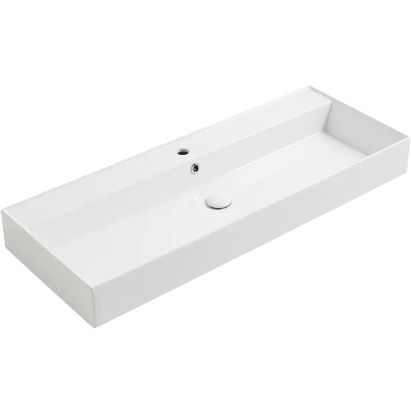 - Белая раковина для установки на мебель: Универсальный белый цвет легко сочетается с различными цветовыми решениями в интерьере.