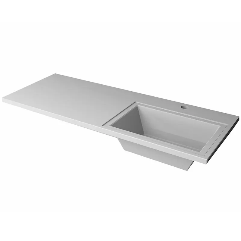 - Раковина Stella Polar с правой ориентацией оснащена отверстием под смеситель справа, что делает её удобной и функциональной.