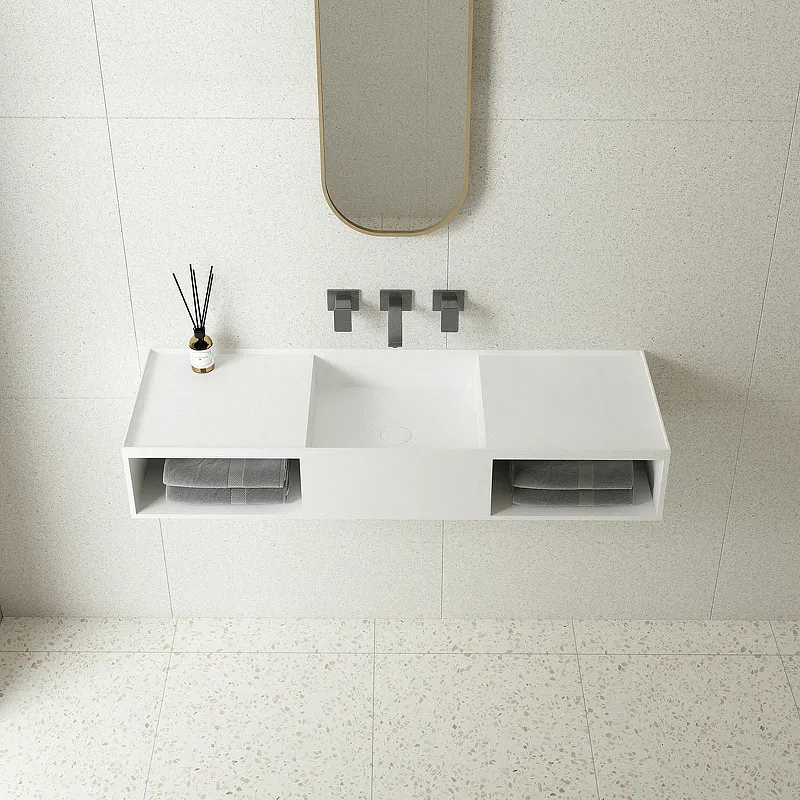 - Материал высокого качества: Раковина из искусственного камня Solid Surface обеспечивает долговечность и устойчивость к повреждениям.