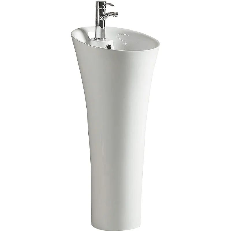 - Белая раковина на пол с одним отверстием под смеситель идеально подходит для установки современного смесителя.
