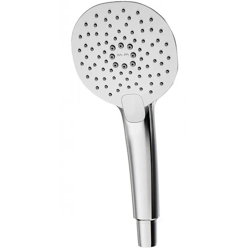 Ручной душ AM.PM Spirit V2.0 F0270A000 в цвете хром круглой формы.Душевая лейка с диаметром 12 см.Ручной душ с тремя режимами подачи воды: Spray, EnerJet, Spray + Massage.Функция Rub&Clean позволяет легко очищать форсунки от известкового налета.В комплекте поставки:ручной душ