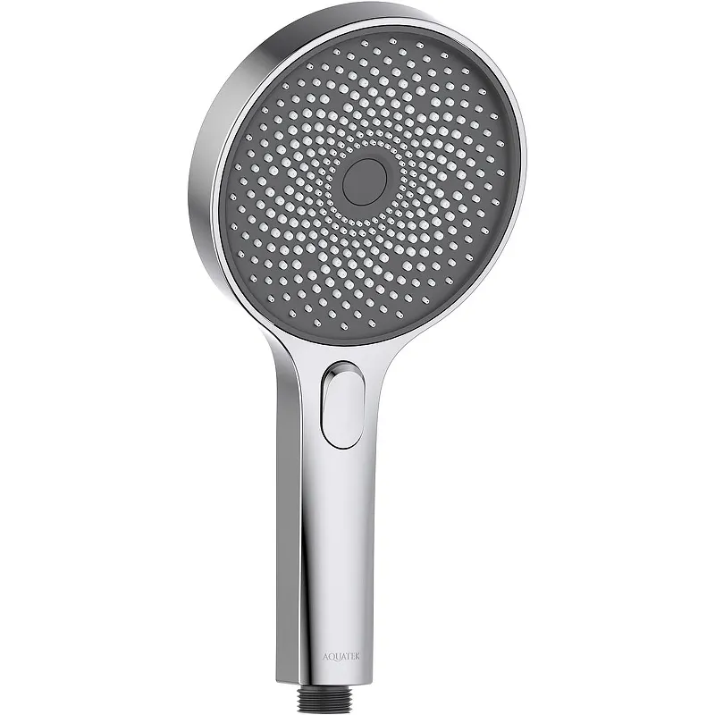 Ручной душ Aquatek Select 130 3 jet AQ2007CR.Характеристики: Цвет: хром. Материал: ABS-пластик. Покрытие: хром-никель. Диаметр лейки: 130 мм. Переключение режимов: кнопочное. Количество режимов: 3. Режимы струи: Дождь, Интенсивная и Смешанная. Стандарт подключения: G1/2. В комплекте поставки: Ручной душ.