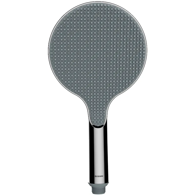 Ручной душ Bossini Apice B00900.030.Характеристики: Цвет: хром. Материал: ABS-пластик. Форма: круглая. Стандарт подводки: G1/2. Диаметр: 140 мм. Минимальный расход воды: при давлении один бар - 11.3 л/мин. Максимальный расход воды: при давлении пять бар - 27.6 л/мин. Количество режимов: 1 (широкая дождевая струя). Функция Easy-Clean: легкое удаления известкового налета. Аэратор из термопластичной резины. В комплекте поставки: ручной душ.