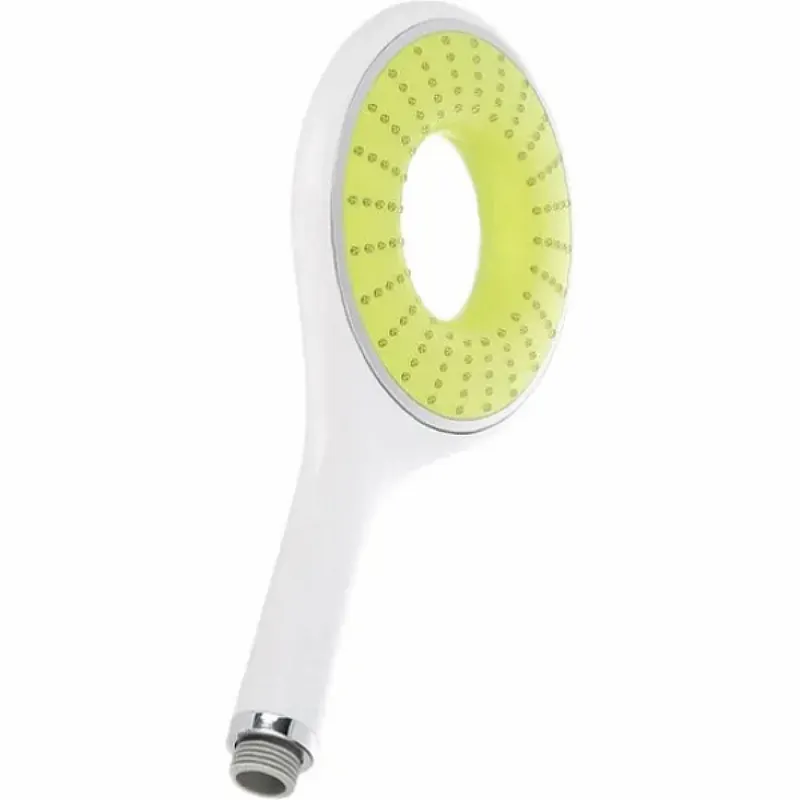 Ручной душ Gappo G09.Характеристики: Цвет: белый с элементами салатового цвета. Материал: пластик. Форма: круглая. Внешняя поверхность корпуса: глянцевая. Габариты (ШхВхД): 115х255х40 мм. Количество режимов: 1. Стандарт подключения: 1/2 дюйма. В комплекте поставки: Ручной душ.