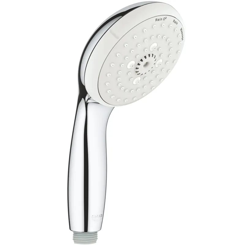 Ручной душ Grohe Tempesta New 28261002.Превосходно сочетается в интерьере современного стиля благодаря лаконичной конструкции и функциональности.Характеристики:Цвет: хром.Покрытие Grohe StarLight гарантирует длительную износостойкость без царапин с сияющей чистотой.Технология Grohe DreamSpray равномерно распределяет поток воды через все форсунки при любом режиме струи.Система термоизоляции водных протоков внутри ручного душа предотвращает нагревание его поверхности.Форсунки оснащены системой SpeedClean с легкой очисткой от известковых отложений.Ручной душ на три вида струи: Rain (дождь), Rain O2 (дождь с воздухом), Massage (массаж).Силиконовое кольцо ShockProof, предотвращающее повреждение поверхности при падении ручного душа.Универсальное крепление, подходящее к любому стандартному шлангу.Подходит для проточных водонагревателей.Стандарт подключения: G 1/2.В комплекте поставки: ручной душ.