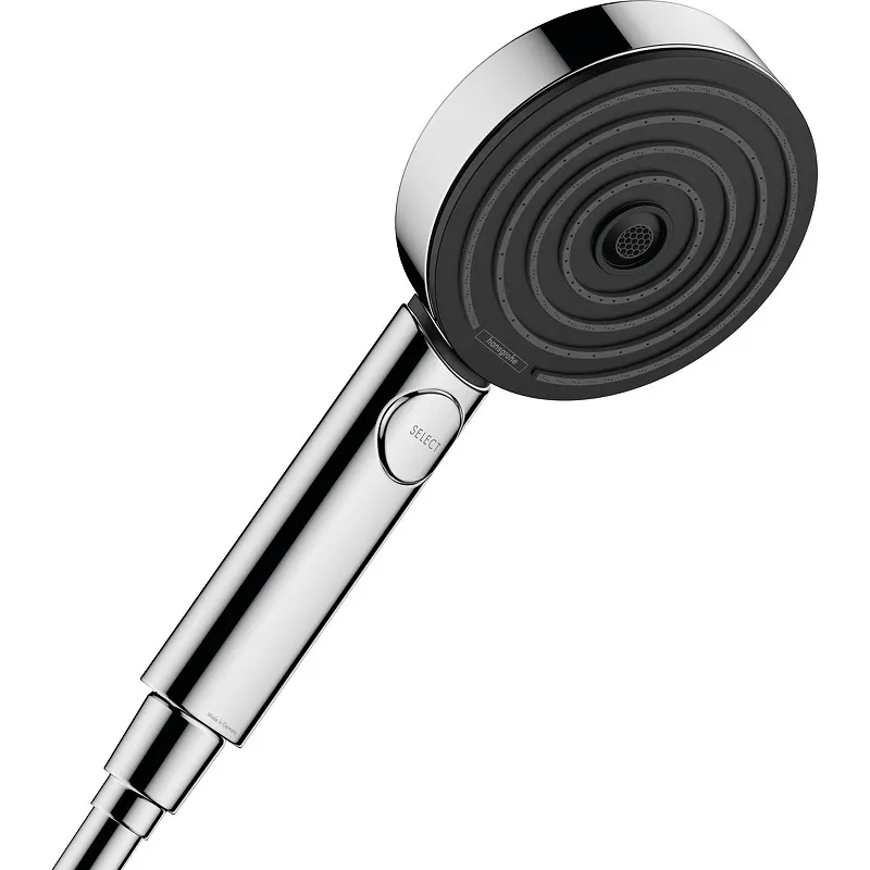 Ручной душ Hansgrohe Pulsify Select 105 3jet Activation 24100000 с 3-мя режимами струи.Характеристики: Цвет: хром. Материал: пластик. Диаметр душевого диска: 10,5 см. Форма: круглая. Режимы струи: PowderRain, IntenseRain, MonoRain. Удобное переключение режимов струи нажатием кнопки Select. Максимальный расход воды при 3 бар: 11,5 л/мин. С внутренней подачей воды. Соединительная резьба: G 1/2. Технология QuickClean: быстрое удаление загрязнений и налета благодаря гибким силиконовым вставкам на форсунках. В комплекте поставки: ручной душ.