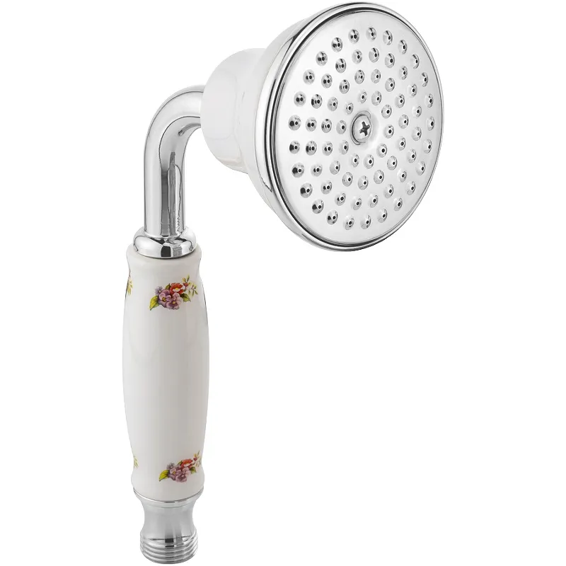 Ручной душ Migliore Provance 19468.Характеристики: Цвет: хром с белой ручкой. Материал: латунь, керамика. Форма лейки: круглая. Диаметр лейки: 78 мм. Количество режимов струи: 1. Стандарт подводки: G 1/2. В комплекте поставки: ручной душ.