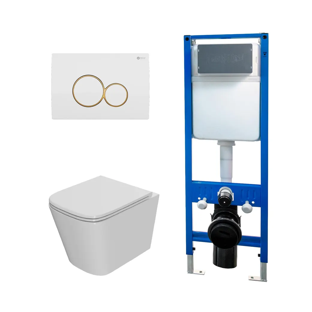 Сет: Система инсталляции Point, Клавиша Виктория бел/зол PN44061WG + Унитаз Ника PN41081