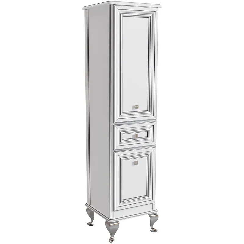 Шкаф пенал Caprigo Fresco 42 R 10650R-В016 — идеальное решение для ценителей классического итальянского стиля в оформлении ванной комнаты. Этот напольный шкаф пенал из МДФ и массива бука, с матовой эмалью, станет стильным и функциональным дополнением вашего интерьера. Латунные ручки с горным хрусталем и металлические ножки придают изделию роскошный вид, а белый матовый цвет с серебряной патиной создаёт атмосферу уюта.