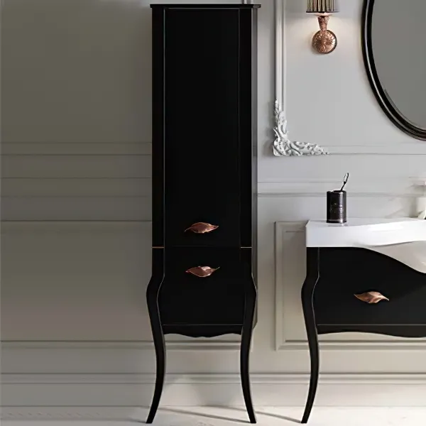 Шкаф пенал Clarberg Borgia 48 BOR0548BLK с черной патиной медь — идеальное решение для тех, кто ценит стиль и функциональность. Этот шкаф пенал, выполненный в классическом стиле, станет украшением вашей ванной комнаты. Комбинированная система установки позволяет легко интегрировать его в любое пространство.