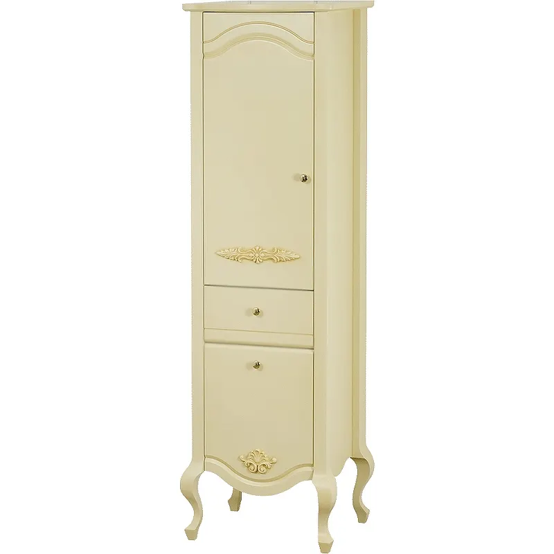 Шкаф пенал Migliore Impero 48 L 26649 — идеальный выбор для тех, кто ценит итальянское качество и классический стиль в интерьере. Данный шкаф выполнен из массива бука и МДФ, что обеспечивает долговечность и устойчивость к влаге, что особенно важно для напольного шкафа пенала в ванной комнате.