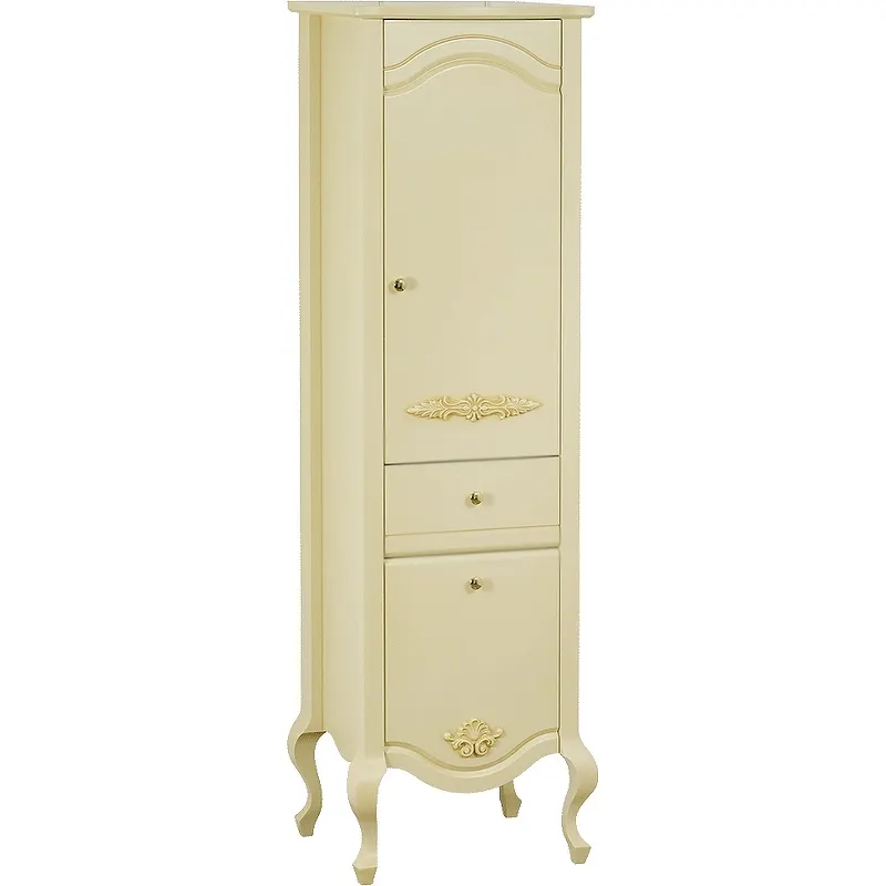 - Элегантный дизайн: Бежево-желтая эмаль с патиной добавляет утонченности, делая шкаф пенал изящным элементом декора.
