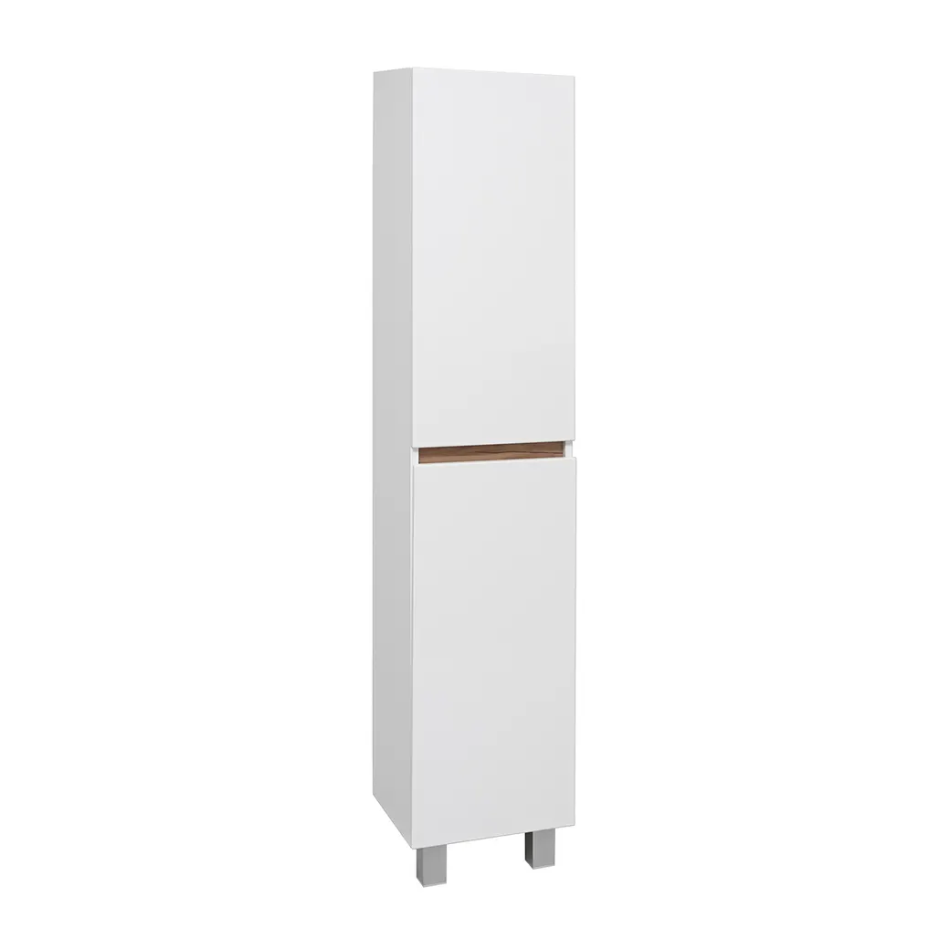 Коллекция SYDNEY особенно органично смотрится в интерьерах в скандинавском стиле. Широкий размерный ряд, удобный функционал и лаконичный изящный дизайн позволяют вписать коллекцию как в просторные ванные комнаты, так и небольшие. Фасад и корпус модели выполнены из МДФ и ЛДСП и облицованы глянцевой пленкой ПВХ, которая совершенно спокойно выдерживает любые влажные условия и устойчива к истиранию, выгоранию. Шкаф-пенал напольный SYDNEY 35см с двумя отделениями. Верхнее отделение с распашной дверкой и двумя встроенными полками Нижнее отделение комплектуется корзиной для белья. Петли со встроенным доводчиком. Модель без ручек, дверки открываются благодаря нише между фасадами и фальш-панелью из ЛДСП в контрастной древесной отделке Дуб Крафт золотой. Пенал в левом исполнении (петли слева).