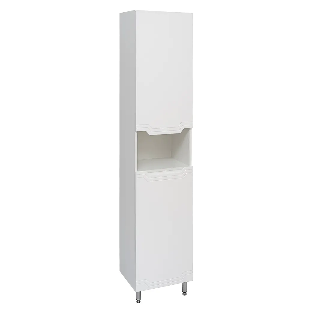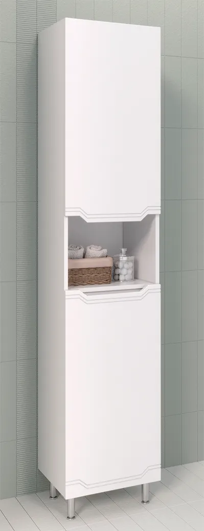 Коллекция мебели VIKTORIA выделяется своей изысканностью и простотой. Благодаря тонким элегантным линиям фрезеровок, плавным изгибам вырезов под ручку и удобной чаше овальной формы комплект смотрится легко и компактно в любом интерьере, не вызывая ощущения нагромождения. Для покрытия фасадов и боковин мебели использованы высококачественная полиуретановая эмаль и лак производства Италии, имеющие высокую устойчивость к механическим и климатическим нагрузкам. Повышенная влагостойкость не даёт воде испортить покрытие. Эмаль не пойдёт трещинами и не потеряет насыщенности цвета со временем. Шкаф-пенал напольный VIKTORIA 40 см с двумя отделениями и открытой нишей посередине. Верхнее отделение с распашной дверкой и двумя встроенными полками Нижнее отделение комплектуется корзиной для белья. Петли со встроенным доводчиком. Пенал в правом исполнении (петли справа).