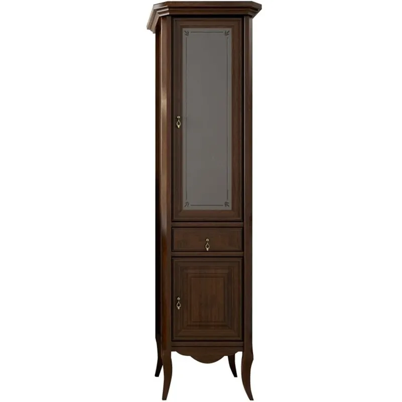 - Классический стиль: Шкаф пенал выполнен в классическом стиле с изогнутыми формами и резными узорами, что придаёт интерьеру элегантность.