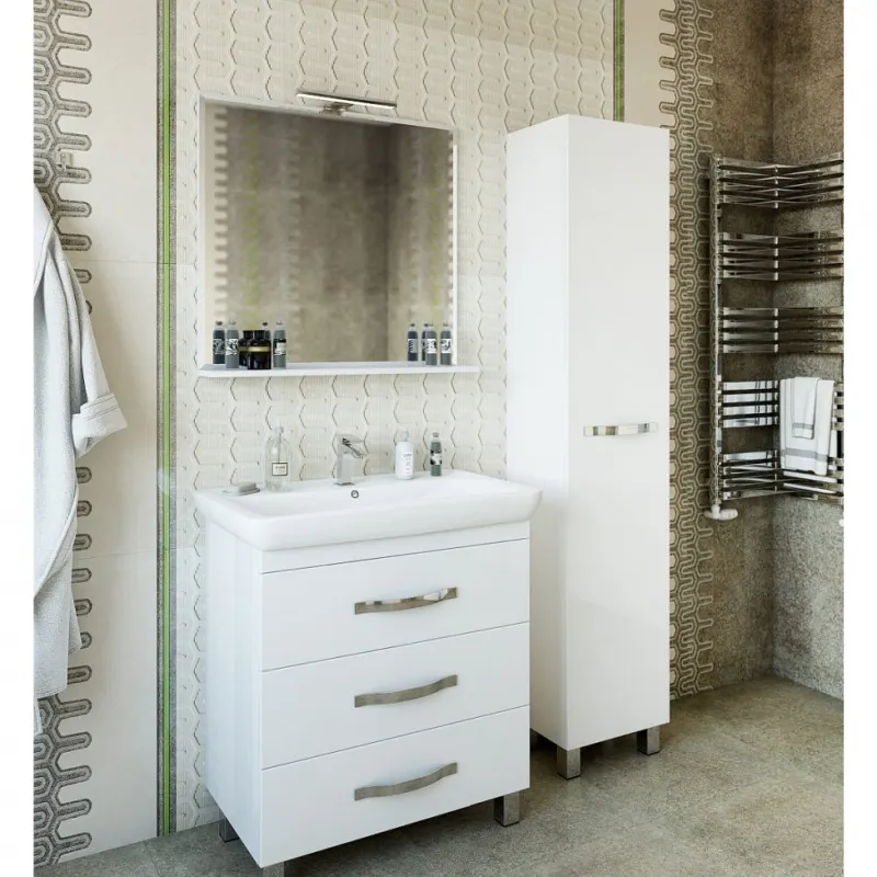 - Элегантный дизайн: Современный стиль и глянцевая поверхность делают шкаф пенал из категории мебели идеальным для любой ванной комнаты.