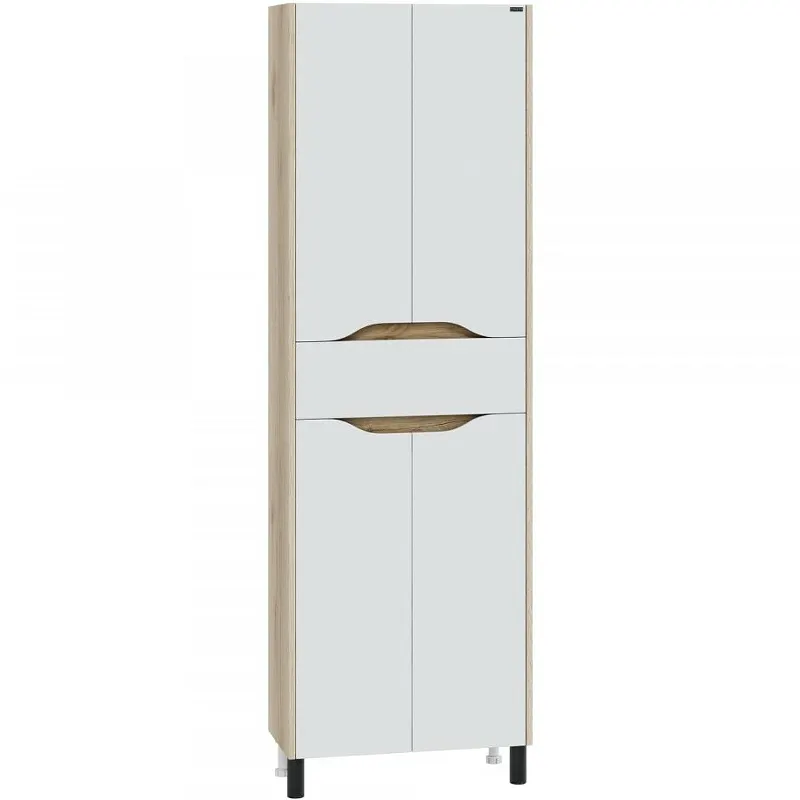 Шкаф пенал СанТа Сатурн 60 700375 Белый Дуб австрийский идеально подходит для обустройства современной ванной комнаты. Этот напольный пенал выполнен в стильном сочетании белого фасада и корпуса из дуба австрийского, что добавляет элегантности и функциональности вашему интерьеру.