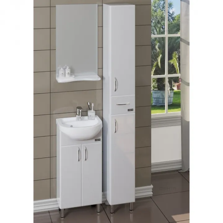 - Компактные размеры: Габариты шкафа позволяют установить его в маленькой ванной, не теряя пространства.