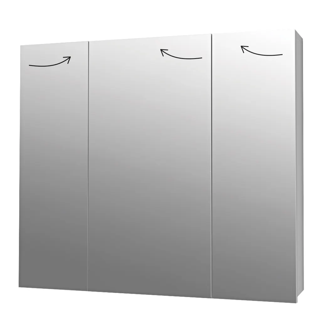 [Шкаф зеркальный ALMI, 80 см, 3 дверцы, 6 стеклянных полок, белый]