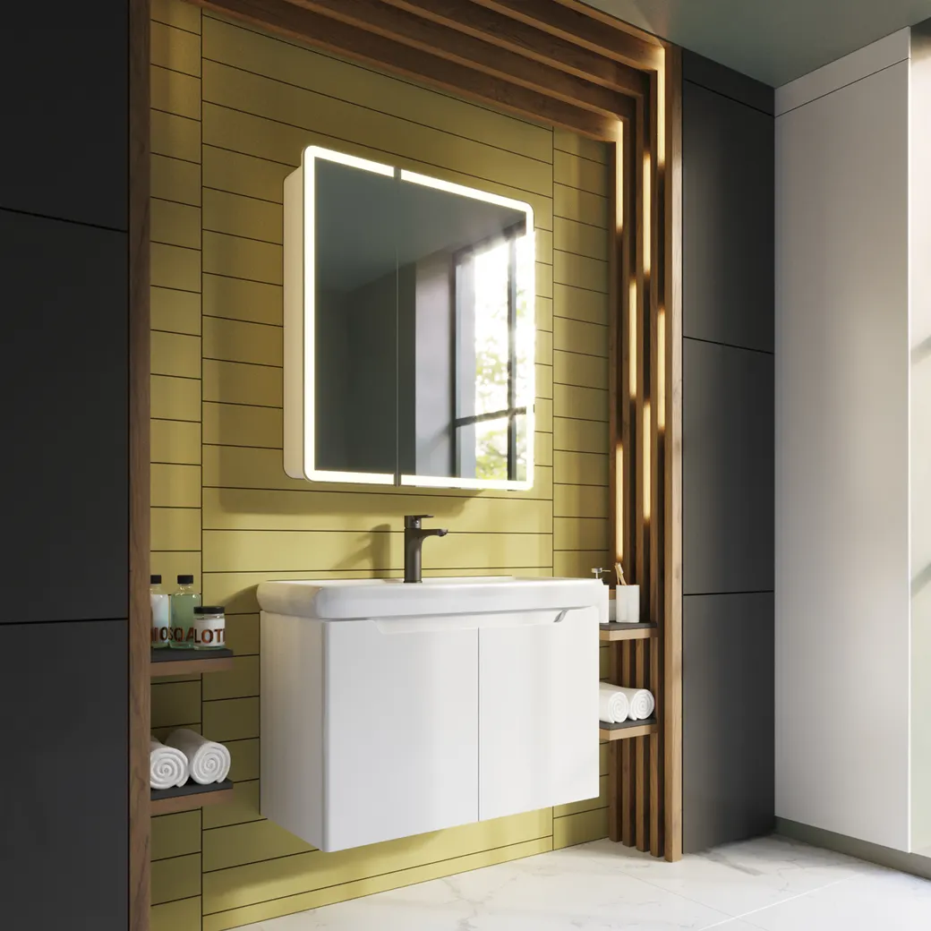 Шкаф зеркальный POINT, 70 см, 2 дверцы, 2 стеклянные полки, инфракрасный выключатель, LED-подсветка