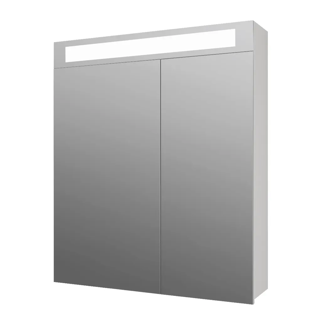 Шкаф зеркальный UNI, 70 см, 2 дверцы, 4 стеклянные полки, с подсветкой и выключателем, белый
