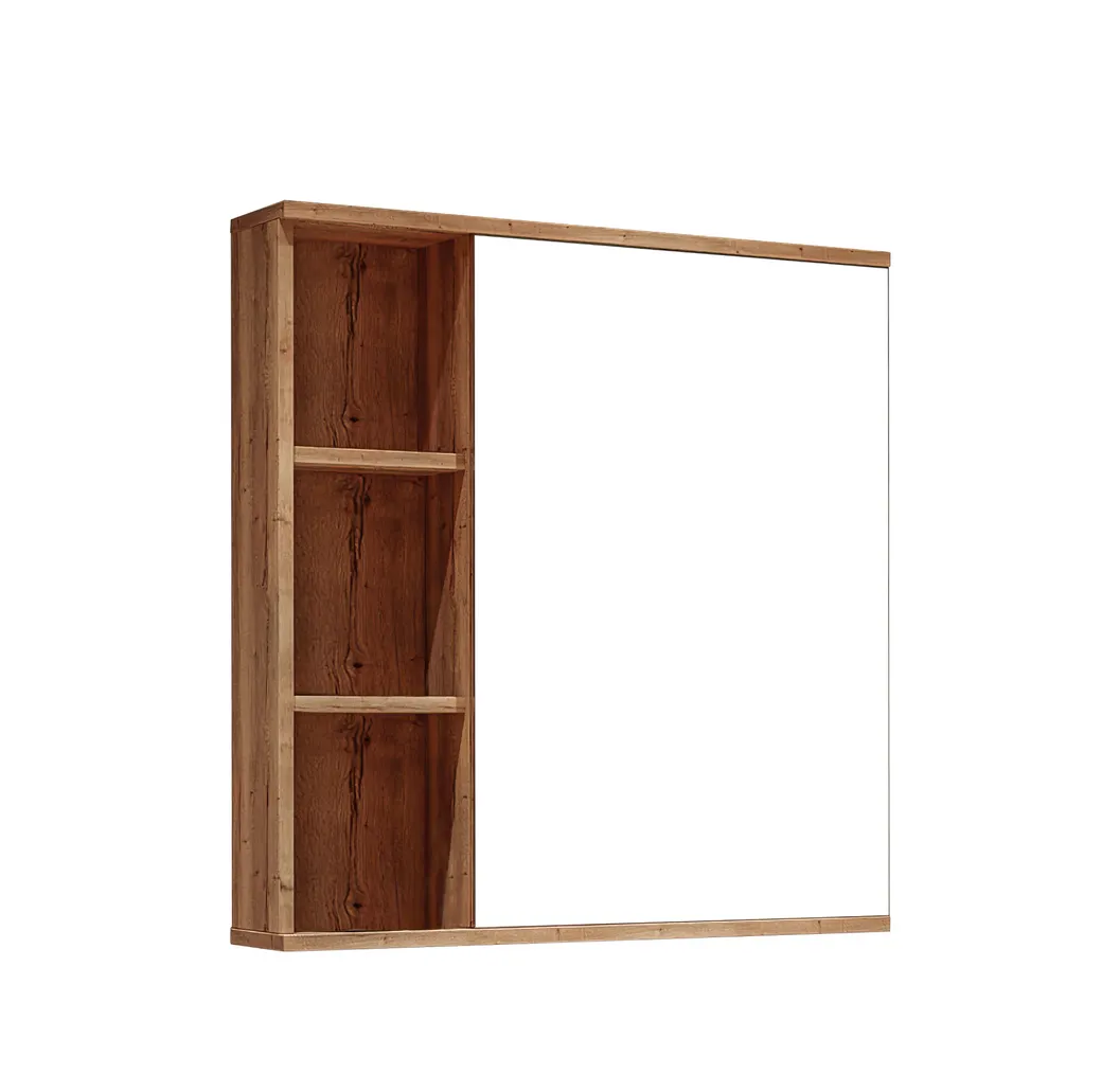 Шкаф-зеркало Форта 70 см - роскошная текстура и натуральный цвет дуба придают зеркалу сочетание современного дизайна. Открытые полки обеспечивают доступ к аксессуарам, а пространство за распашной зеркальной дверцей с механизмом плавного закрывания, разделенное полочкой, позволит хранить бытовые принадлежностей. Шкаф-зеркало имеет универсальную ориентацию: верх и низ шкафа можно менять местами, а дверца может открываться как влево, так и вправо. Зеркальный шкаф выполнен из влагостойкого ЛДСП, устойчивый к перепадам температур и высокой влажности. Подвесы для крепления шкафа - в комплекте.