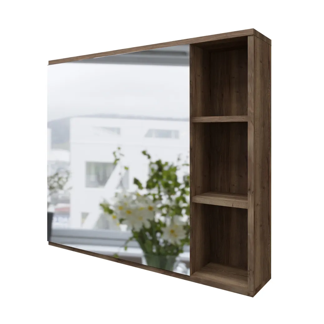 Шкаф-зеркало Форта 80 см - роскошная текстура и темный цвет дуба придают зеркалу сочетание современного дизайна. Открытые полки обеспечивают доступ к аксессуарам, а пространство за распашной зеркальной дверцей с механизмом плавного закрывания, разделенное полочкой, позволит хранить бытовые принадлежностей. Шкаф-зеркало имеет универсальную ориентацию: верх и низ шкафа можно менять местами, а дверца может открываться как влево, так и вправо. Зеркальный шкаф выполнен из влагостойкого ЛДСП, устойчивый к перепадам температур и высокой влажности. Подвесы для крепления шкафа - в комплекте.