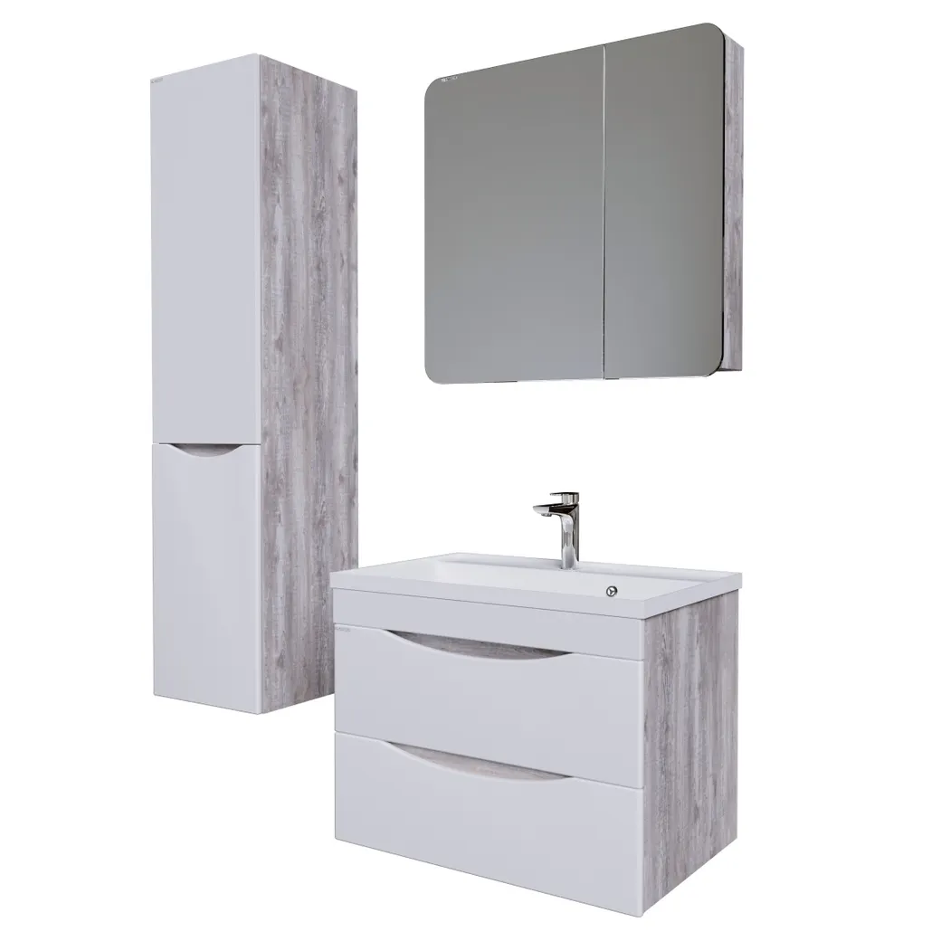 Шкаф-зеркало Талис-70 см позволяет эффективно использовать пространство ванной комнаты, обеспечивая быстрый доступ к самым необходимым предметам, при этом не создавая визуальный шум. Просторный шкаф с двумя распашными дверьми вмещает в себя два отсека. В левом отсеке две полки из ЛДСП, в правом две полки из стекла.. Корпус выполнен из влагостойкого ЛДСП в цвете бетон пайн. Дверца шкафа открывается за фасад и комплектуется петлями с доводчиком. Подвесы для крепления шкафа - в комплекте.