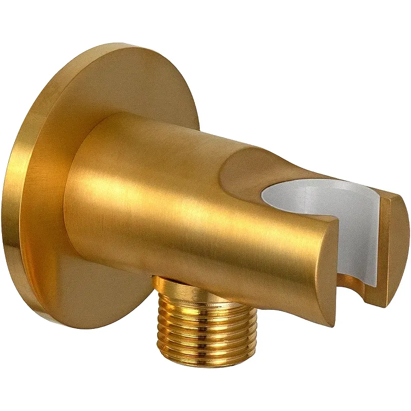 Шланговое подключение Remer 337MBG с держателем ручного душа.Характеристики: Цвет: золото брашированное (BG). Материал: латунь. Размер (ШхВхД): 60х60х68 мм. Стандарт подключения: G 1/2. Монтаж: на стену. Комплект поставки: Шланговое подключение с держателем ручного душа.