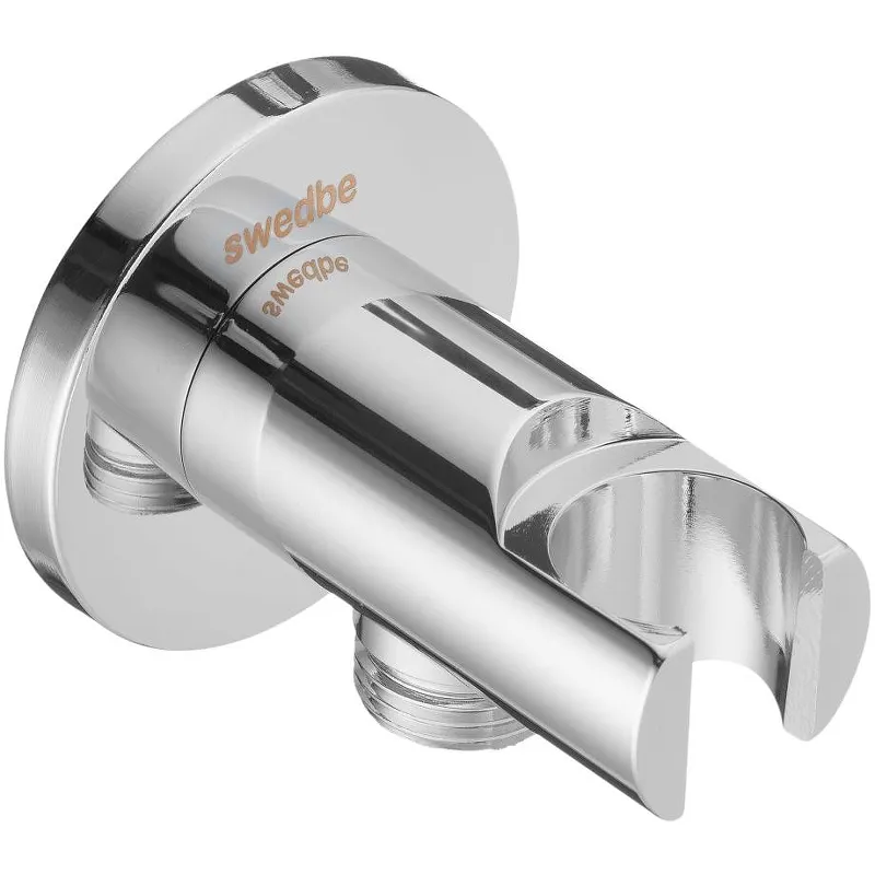 Шланговое подключение Swedbe Platta 5505.Характеристики: Цвет: хром. Материал: высококачественная латунь, стандарт Pb free (без свинца). С держателем ручного душа. Стандарт подводки: 1/2. Монтаж: на стену. В комплекте поставки: Шланговое подключение.