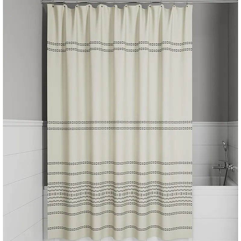 - Водоотталкивающее покрытие: Шторка для ванны из полиэстера надежно защищает от брызг, обеспечивая сухость помещения.