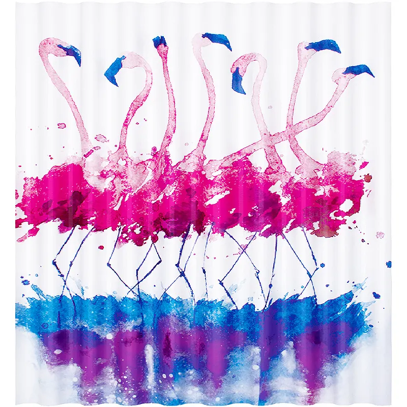 - Современный стиль: Принт фламинго и сине-розовая цветовая гамма делают штору отличным выбором для модернизации ванной комнаты.