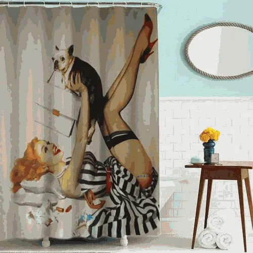 Шторка для ванной тканевая 180х180см "Дама с собачкой" MELODIA MZ-52 - это водонепроницаемая занавеска для ванной комнаты с 12 люверсами из нержавеющей стали и с утяжеляющей лентой, не позволяющей занавеске мяться. Упакована в мешок с ручками в цвет шторы. Высота шторки 180см, ширина шторки 180см. Стирка при температуре до +40° С.brbr# занавеска для ванны # штора # мелодия
