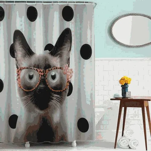 Шторка для ванной тканевая 180х180см "Кот в очках" MELODIA MZ-41 - это водонепроницаемая занавеска для ванной комнаты с 12 люверсами из нержавеющей стали и с утяжеляющей лентой, не позволяющей занавеске мяться. Упакована в мешок с ручками в цвет шторы. Высота шторки 180см, ширина шторки 180см. Стирка при температуре до +40° С.brbr# занавеска для ванны # штора # мелодия